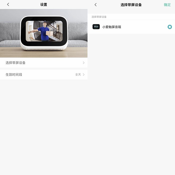 如果家里在使用小爱带屏音箱等设备,当有人来访时摄像头的监控画面会实时推送到绑定的带屏设备上,这样的话就可以不用手机也可以进行简单的沟通了。