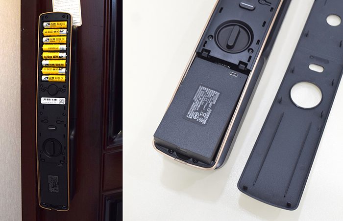 指静脉的8节5号电池虽然没有剩余电量提醒,但是米家App内会有使用时长提醒,每个用户可以根据自己使用的情况进行适时更换。如果万一遇到了一点电都没有的情况,鹿客S50M在室外锁体下方提供了一个Type-c的充电口,可以用充电宝为锁体临时供电进行指静脉解锁开门,然后及时更换电池即可。