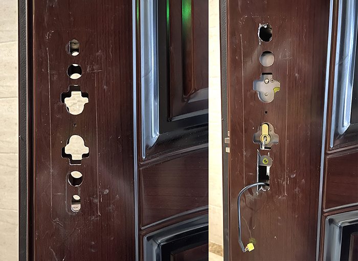 将旧锁拆下后,将新锁锁体定位并安装。咨询了一下师傅,他说原始的这个锁体,有和没有基本是一样的,开起来很快,不过既然是开发商赠送的锁,能关上就行了,你也别想有太好的防盗性能。鹿客这款锁,可以放心使用,我作为从业者可以这么给你说,你们自己去网上搜一下也能得出这个结论。