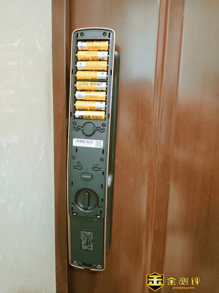 安装好后通过从底部凹槽撬开面板,可以看到充电仓。鹿客S50M做了双仓设计,上部仓位干电池供电区域,通过8节干电池,为门锁提供长达全年12个月的超长续航时限,再也不用担心分分钟门锁没电要换电池充电了。