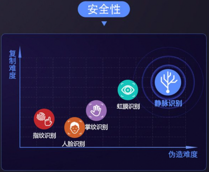 而且指静脉识别是目前最超前的生物信息识别技术,解锁的安全性能、防窥视性能和识别准确度都远超指纹识别、人脸识别、掌纹识别、虹膜识别等大多数识别技术,安全性和便捷性都大大提高。