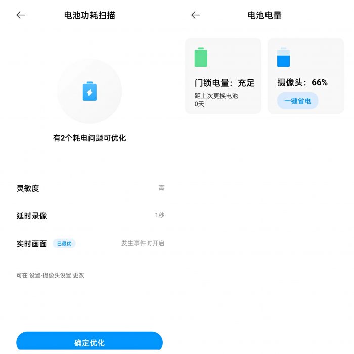 APP端还可以实时查看电池续航能力,确保及时更换新电池防止紧急断电。而且支持定期进行耗电功能优化,让门锁使用时间更久。