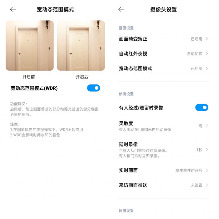 以及摄像头设置、画面设置、侦测灵敏度设置