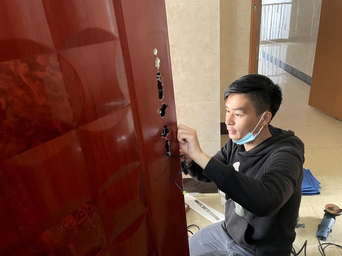 由于笔者家里的门安装过智能锁,所以安装过程不需要钻孔和切割门板,所以安装非常顺利,用时不到半个小时就安装完成了。安装完毕后,师傅还会教自己怎么连接手机APP和使用方法,非常有耐心,在笔者掌握之后才会离开。