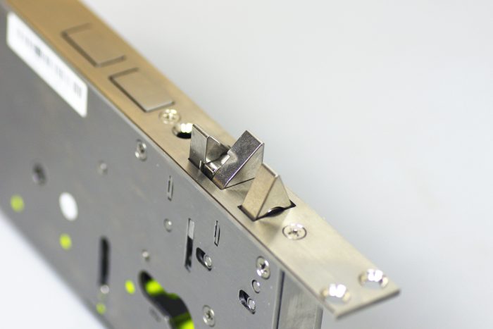 鹿客S50M智能锁采用的是不锈钢全自动锁体,通过公安部整锁B级、锁芯C级、SRRC、BQB、RoHS等认证,是目前智能锁中通过认证最多且最全面的一款锁体。锁体侧面采用了检测舌+剪刀舌+反锁舌倒置的组合设计,能有效防止插卡开锁。另外,检测舌可以实时监测开关门状态,超时未关门或者门虚掩都会有本地语音和APP通知提醒。