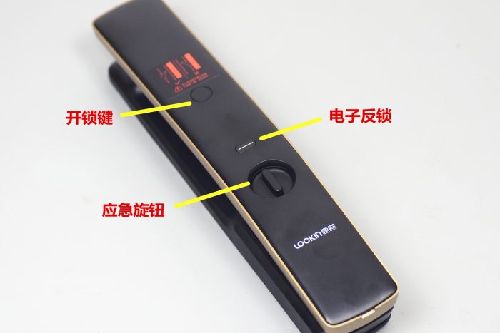 在圆形开锁键下方是电子反锁键,启动反锁以后只有管理员才可以从室外打开房门,小孩或女性用户在家的时候更放心,也不用担心被孩子误反锁后大人进不了门。而最下方的是应急开锁旋钮,通过物理的方式直接驱动锁舌,门锁没电或者紧急情况下旋转旋钮可直接从室内打开房门。