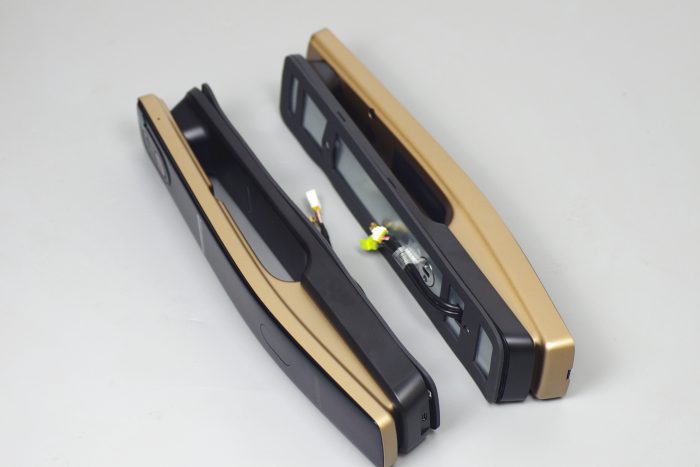鹿客S50M智能锁与我之前用过的几款智能门锁都有些不同,不仅没有转轴把手,甚至连推拉把手也换了一种一体化的全把手设计方式,内、外面板均采用了纯黑+流金镶边的高端配色,看起来低调沉稳又很大气。