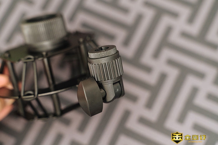底部锁定麦克风的锁扣,将麦克风装上,然后直接拧紧即可。在侧面还有一个可以180度旋转的螺纹接口。