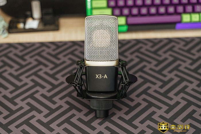 从外形上能看出来,X3-A非常的专业,重量达到了385克。锌合金一体成型的外壳,可以有效的抑制各类的电磁干扰,保证录音质量的干净,尼龙编织的网罩也是通过精确计算丝径与间距,结合了干涉校正技术,做到无损音质的同时,还能有效保护防喷防尘的效果。