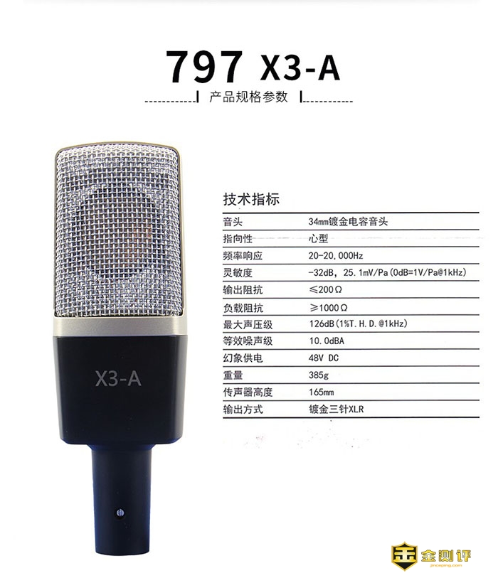 通过以上的内容,你应该能知道了一些麦克风的基本知识,同时也知道了录制人声最合适的麦克风就是,大振膜电容心形指向的麦克风。今天我就来评测一款适合人声录制的大振膜电容麦克风,来自797AUDIO的X3-A。