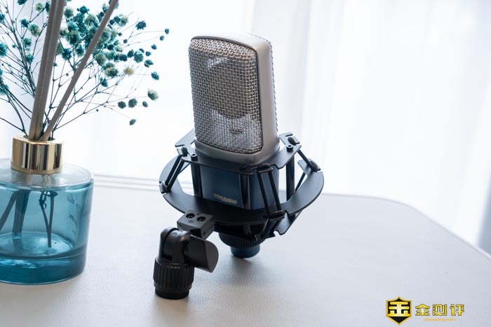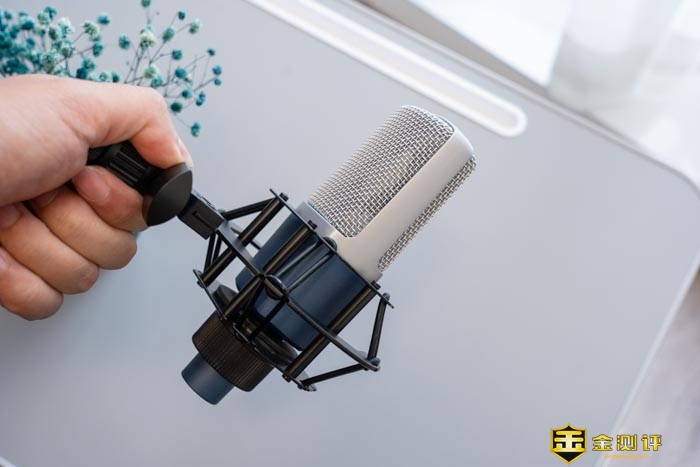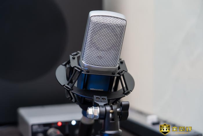 从照片可以看出,内置的超大镀金电容音头,它的直径达到了34mm。并且采用的是吊装结构设计,可以精准的控制收音的角度,避免了环境的干扰和机械震动产生的噪音,抑制噪声反馈现象。