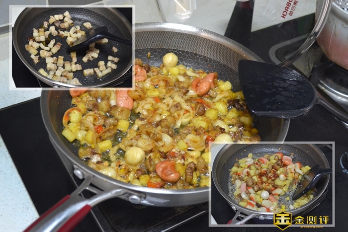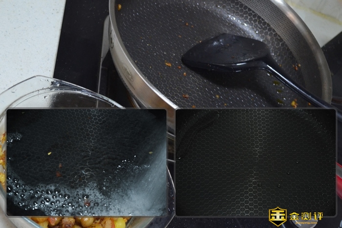 锅中的蜂窝纹理,让清洗更简单,炒完一道菜随即清洗,瞬间焕然一新的样子,打理时太省事了,简直是太棒了。