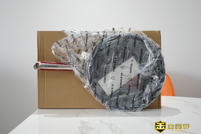 打开包装可以看到了康巴赫第五代抗菌煎锅的丰富配件,包含了锅盖、把手、以及说明书等。