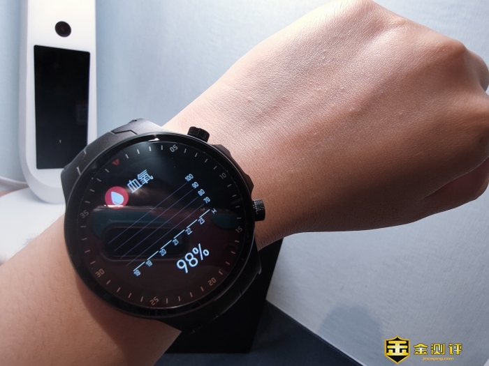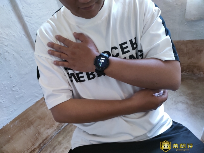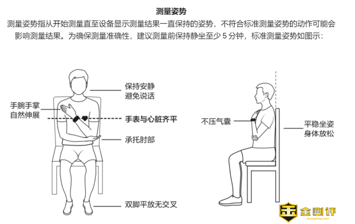 采用坐姿,坐好后休息调整呼吸几分钟,然后点击手表下侧键,选择精准测量选项,将手掌打开置于右胸口上方,让手表与胸口齐平,另外一只手托住护着手肘。