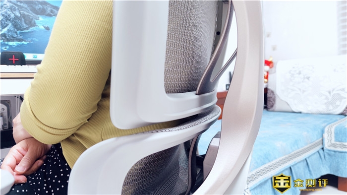 整把椅子的面料均采用特网布料,看似弱不经风的单薄,凭手感摸上去非常紧绷,整个人坐上去弹性十足,如果不看布料的话,还真有坐到高弹性传统垫子椅上的感觉,弹性十足没有下陷的沙发感觉,座垫后部稍微后倾,更深入贴合臀部,身体微微后靠符合日常体位,网面设计高弹透气更加耐磨。