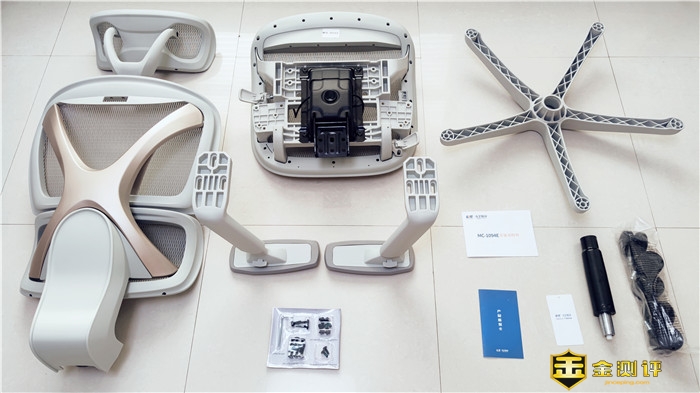 整体部件包括:头枕一个、靠垫一套、扶手一对、座垫一个、尼龙五星脚一套、万向轮五个、固定螺丝+内六角工具一把、说明书一本。