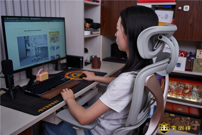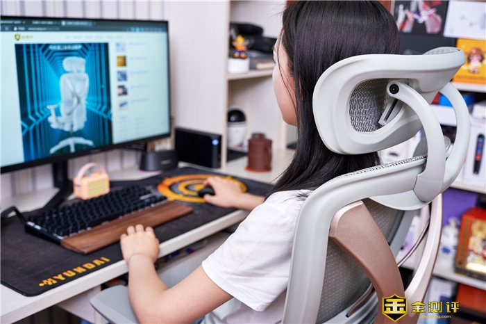 再加上网面材质弹韧透气,3D扶手多向可调,这大大提高了在屏幕前久坐的舒适体验。脊椎处于更加自然的生理弯曲状态,颈部、手肘都有被照顾到,让小仙女在电脑前久坐更久了,但坐姿更健康。