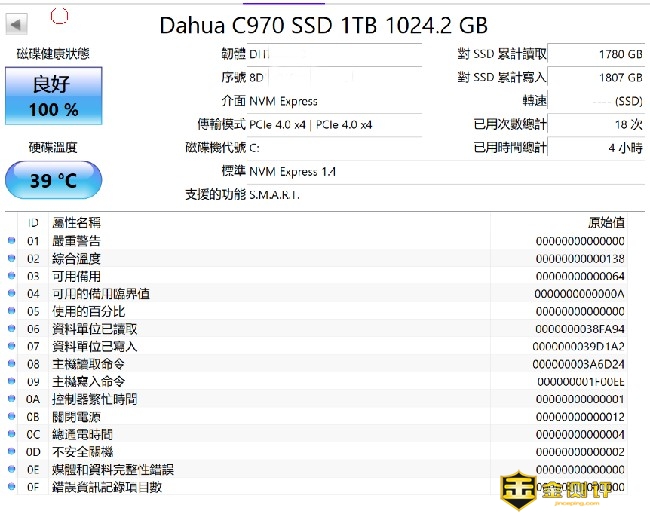 大华C970系列PCIe 4.0固态硬盘标称容量1TB,实际可用容量在953.85GB。