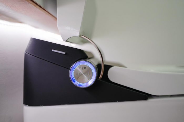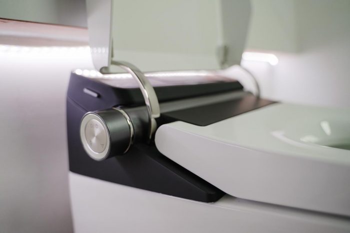 机械旋钮设计在了马桶的机身右侧,如厕时更方便触及,如果你不想去拿遥控器,也可以使用旋钮控制臀洗、妇洗和冲水功能,一样方便的很。