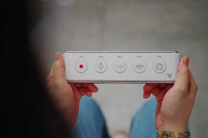除了用遥控器控制外,设计师们还在云米AI健康检测马桶Air的机身侧面增加了一个控制旋钮,我们可以通过前旋、后旋或者按压的方式实现各功能操控,具体的操控方法,大家可以参阅说明书哈。