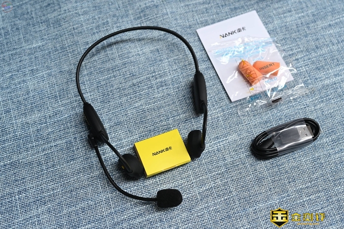 南卡Runner Comm的包装设计并不呆板,采用了活力十足的黑色和黄色,这款耳机本身是黑色的,带有几处亮黄色的装饰,看起来很活泼。南卡Runner Comm的配件包括了充电线、耳塞以及说明书,它是通过特殊的磁吸接口充电,保证了自身出色的防水能力。