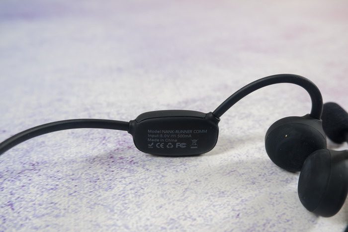 南卡骨传导Runner Comm蓝牙耳机的左侧,印有耳机相关的规格参数信息。
