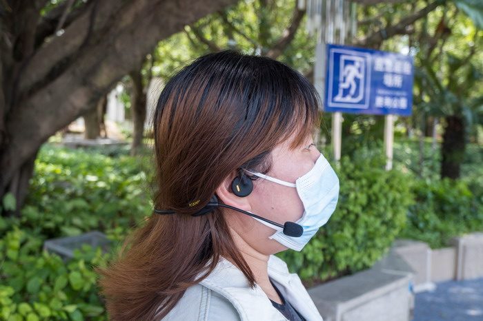 南卡骨传导Runner Comm蓝牙耳机佩戴相当舒适,机身的轻重量,完全不会给耳朵带来负担,长时间配备也不会感觉不适。延伸式的麦克风,表现是真的相当不错,哪怕是室外,在主干道旁边,比较嘈杂,通话的清晰度也没有收到影响,这点就非常好。而且麦克风还能自由调节到最合适的角度和位置,非常的方便。在室外的时候,南卡骨传导Runner Comm蓝牙耳机的漏音就几乎可以忽略不计了,以通常两人在交谈时的距离来测试,几乎是听不到南卡骨传导Runner Comm蓝牙耳机发出的声音的。