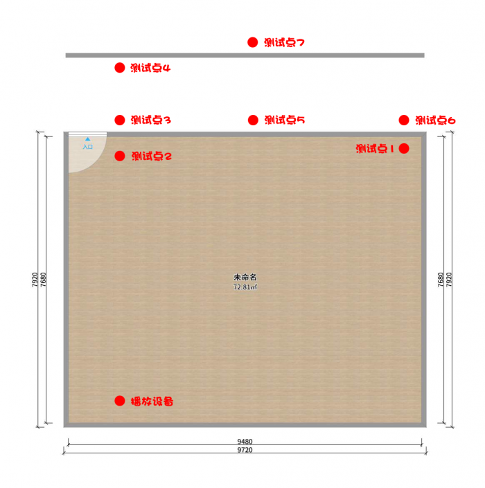 在蓝牙连接稳定性方面,依旧是按照日常使用环境进行测试。一共设置了7个测试点,与蓝牙连接设备距离不同,测试点7距离播放源有两堵承重墙(24cm钢筋混凝土墙)的间隔。