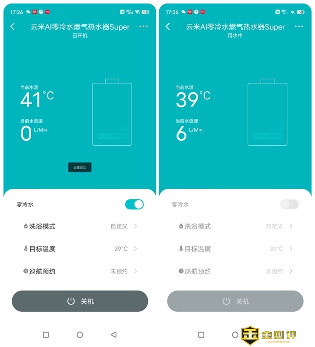 在米家APP上,我们可以查看热水器当前水温和水流,也就是热水器的使用状态,另外我们也可以设置热水器的温度还有各项功能,就和直接在热水器上操作一样,云米AI零冷水燃气热水器Super的反应速度很快,后期也可以通过固件升级来获得更多的功能,或者是提升稳定性。