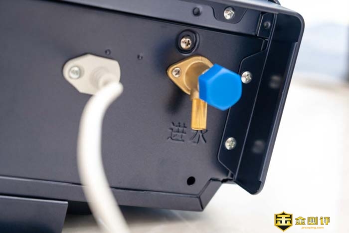 最后来看看底部,底部有三个接头和一条电源线。三个接头分别对应出水口,进水口和进气口。