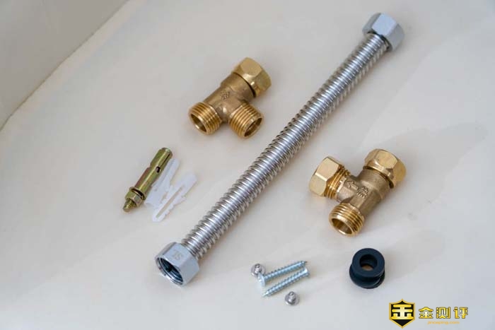 除此以外,厂家还随机附送了一些安装螺丝和两个三通接头,三个密封圈,一段水管。这两个三通是用来设计零冷水用的。如果不需要零冷水的话这两个头用不上。