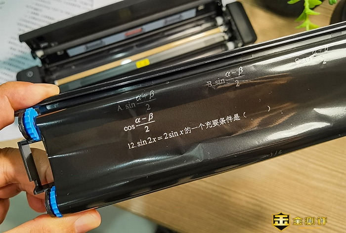 汉印便携A4打印机MT800的碳带更换、安装方式也很简单,基本没有什么难度。上图实拍的就是汉印MT800专用热转印碳带,每个碳带一次约可打印45张A4纸。