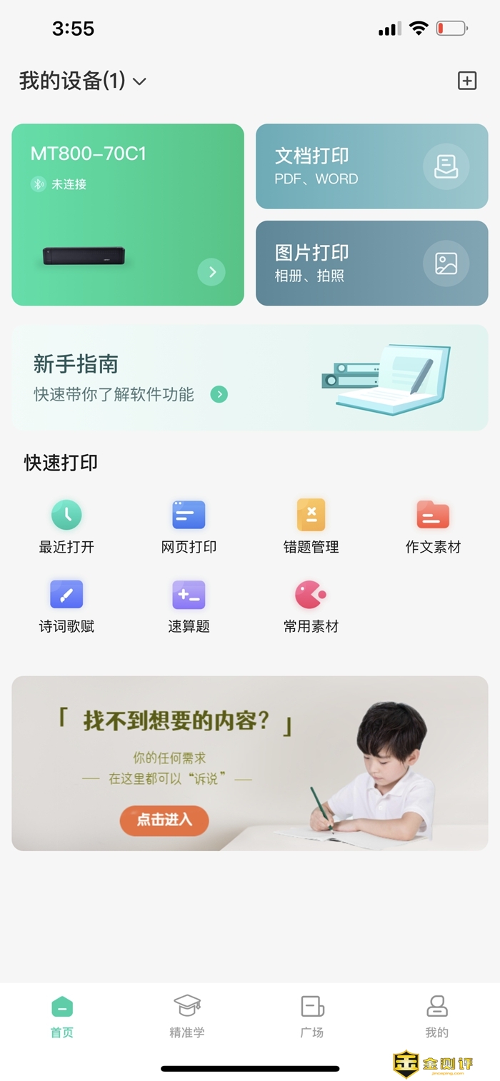 连接蓝牙后,在App中再次连接打印机,然后打印机方面插入A4纸,这里还需插句嘴,MT800不像常规打印机需要打开上盖压入纸张,它具备自动吸纸功能,只需对孔放入纸张前端就会自动吸入,实测成功率很高。