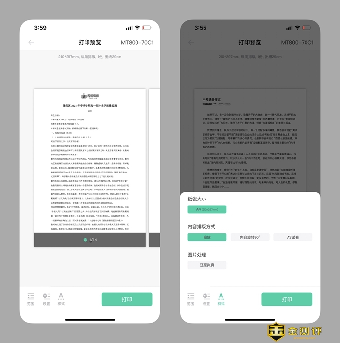 选择好相关文档后,会出现打印预览,就是真实的打印的效果,如果是打印图片,会比实际的图片更粗糙一些,不过这款产品主要还是用来打印文字内容的,不必苛求。另外还可对打印范围、打印浓度、份数,排版方式、以及裁剪、旋转、图片处理效果等进行定制。
