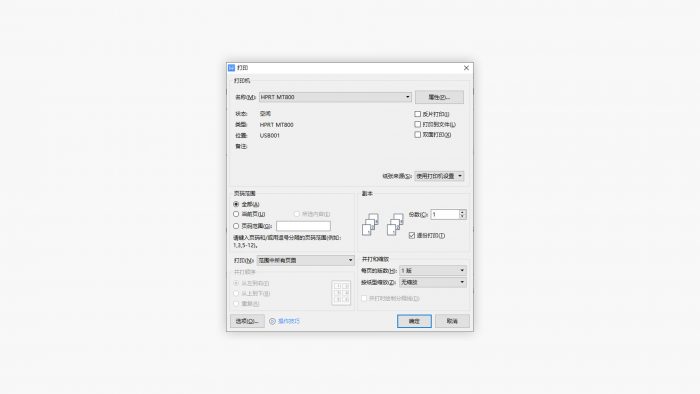 在预览界面可以设置打印的范围,比如多页文档可以选择打印全部页码或者其中几页;设置选项中可以自定义打印着色浓度、是否打印页码字样和打印份数;样式选项中提供有多种内容飘板方式和图片处理方式,根据用户选择自动对内容排版进行调整。由于MT800是只支持黑白打印,文档中的彩色文字和图片全部会以黑白形式呈现。