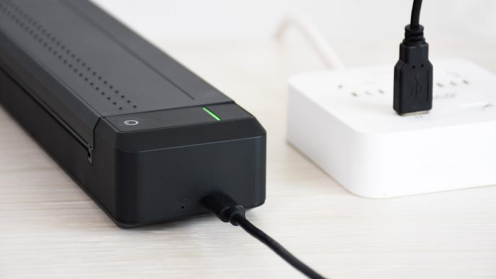 续航方面,MT800打印机内置有2000mA容量的锂电池,满电状态下可以满足70张A4纸连续打印,纯待机时间大约在26个小时左右。充电接口位于机身左侧,采用主流的Type C接口,输入功率为5V-2A。