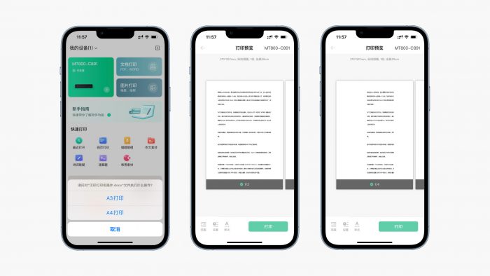 在APP首页可以直接浏览访问保存在手机上的文档和图片进行打印,文档格式支持主流的PDF、Word、Excel和PPT等等。选择需要打印的文档之后会提示选择以A4或A3方式打印,不过这里的A3打印并不是说这台打印机支持A3纸张打印,而是按照A3试卷排版的方式自动调整文档格式排版,通过上面的对比图可以直观了解到。