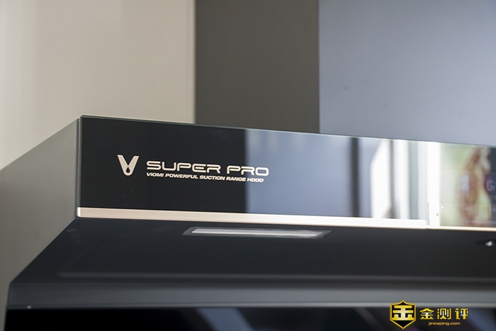 左上角的带有暗金色的云米AI油烟机Super Pro型号logo,为烟机的颜值起到了很好的点缀。