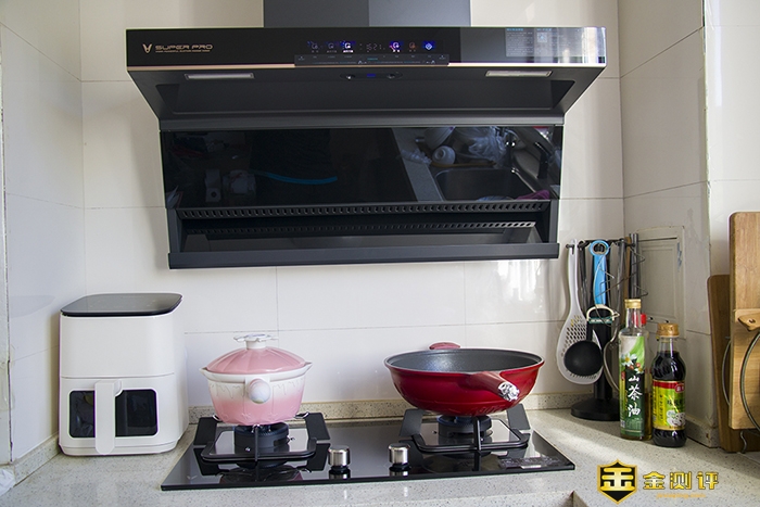 实验中可以看到侧吸的风口离灶台特别近,能够快速的将油烟吸走,顶部的风口作为替补,随时将油烟一网打尽。