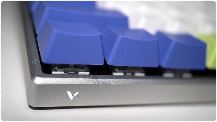这款键盘用的是单色白灯,尽管我很喜欢RGB的光污染,但是V700-8A机甲紫搭配白灯有一种优雅的感觉。