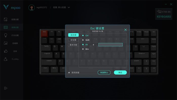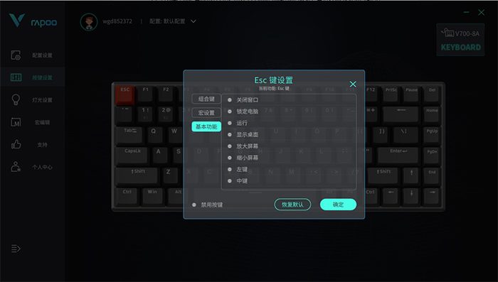 当然,键盘每个按键都有基础功能,也可以根据自己的喜好对基础功能进行修改或禁用。