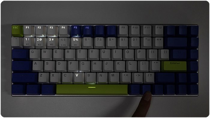 说到这里,我还发现一个有意思的点:当打开键盘的电源时,键盘灯会组成一个V型的灯效,一开始我以为是爱心,反应半天才感觉实际代表的应该是“V”。