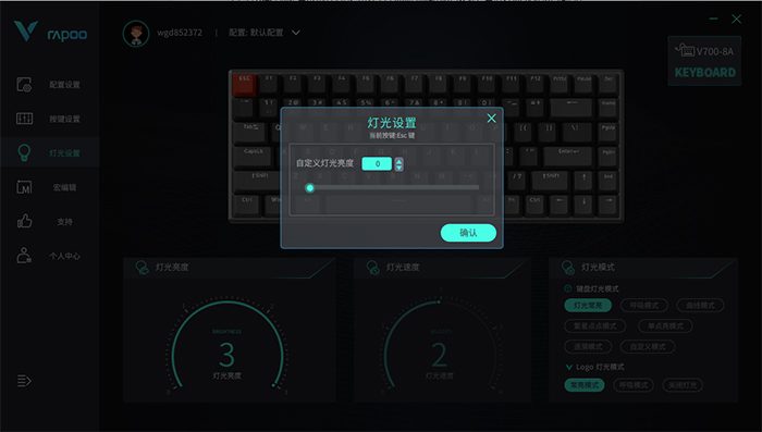 这款键盘的灯光可以通过快捷键实现,也可以通过驱动软件实现,灯光的亮度、速度、灯效模式都可以自己定制。