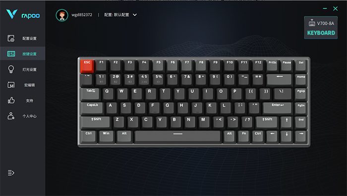 这款键盘还配备了驱动程序,刚好和我前段时间分享的雷柏VT960S是同一个驱动。连接上以后在驱动程序里就会自动出现设备。软件可以存储不同的设置方案,用于一键切换,比如日常办公使用时,设置一些特殊的快捷键以提高效率,下班后在家打游戏设置一个宏可以一键连招等等。