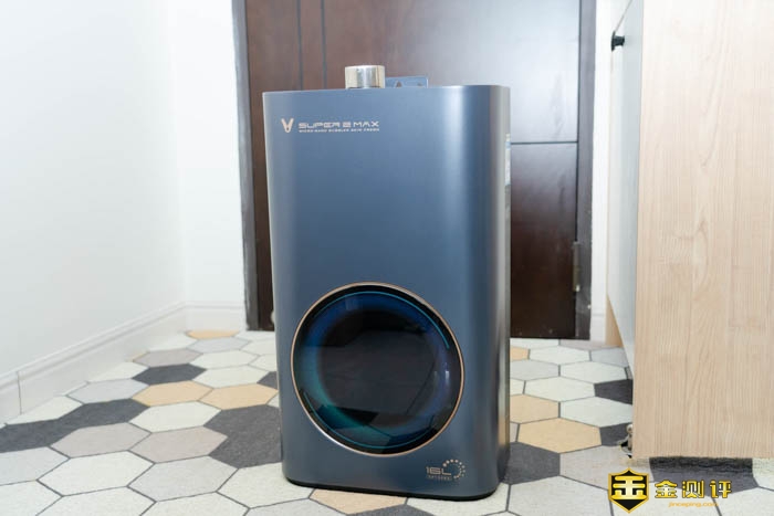 在右下角还有一个16L的标志。一般来说燃气热水器的容量越大,温度控制越准确。尤其是家里有多个热水龙头同时放热水的时候就需要热水器发挥出大容量的优势了。云米Super 2 Max作为一款旗舰级别的热水器,只有16L的选择,一般来说,家里的人口有三人以上,要想有更完美的体验,我也是建议热水器一定要选16L的。