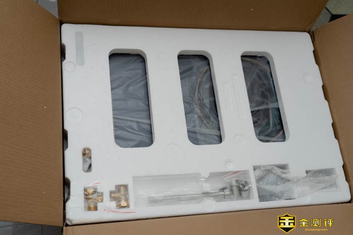 开箱后可以在包装盒的泡沫里发现很多小配件,有纯铜的五金件,还有软管。甚至这还有一个浴头。