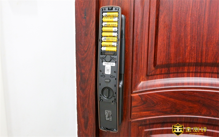 安装内门锁,可以清晰的看见8个电池位,官方介绍说以每天开关10次计算,待机时间可长达12个月。这么多电池看着就放心,一年不用管它,确实安心不少。