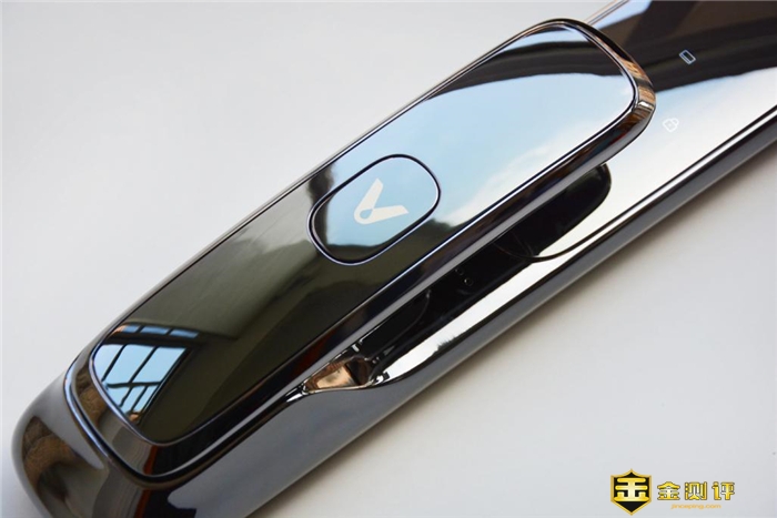 外面板的底端把手设计,云米全自动指静脉锁eyeLink 2S将指静脉识别区、应急接口和机械钥匙孔都布局在了该处。其中指静脉识别区域位于把手的背面,当使用指纹开锁时,并可一气呵成的完成拉门动作,整个过程一步到位。至于应急接口和机械钥匙孔,云米全自动指静脉锁eyeLink 2S做了一个隐藏扣板式设计,表面印有品牌logo,无论是产品的美观度,还是辨识度,这一操作肯定是达到了1+1>2的效果。