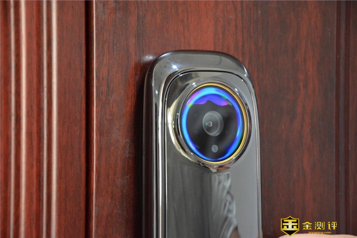 当然,此处还有一个值得提出的细节,猫眼部分与机身采用了无缝衔接,这让圆形的镜头没有产生丝毫突兀感。且在实际开锁过程中,猫眼镜头部分还会出现炫彩的渐变光效,带来赏心悦目的交互体验。