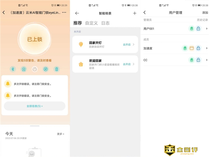 除了以上几种开锁方式外,云米全自动指静脉锁eyeLink 2S在连接米家APP后,还可直接通过手机实现开锁,这也算是一种适用性很普遍的开锁方式。